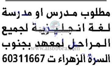 تعلن مدرسة خاصة في دولة الكويت عن وظائف جديدة للمعلمين والمعلمات وذلك وفقا لنص الإعلان التالي:-