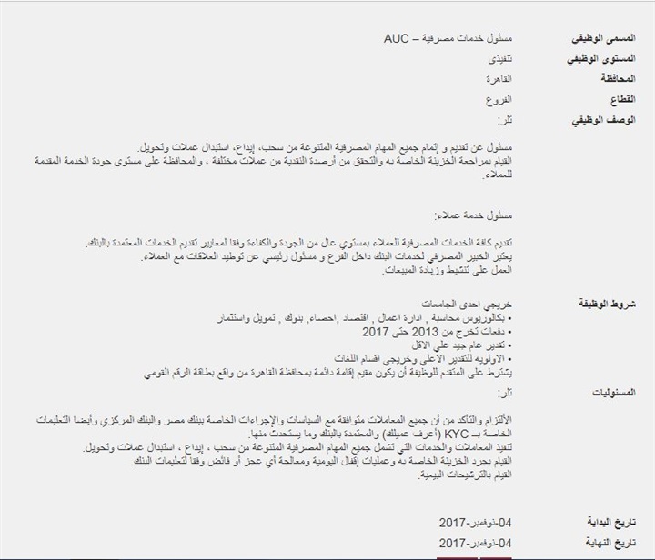 اعلن بنك مصر على موقعة الرسمى عن وظيفة خالية ووفقا للشروط المرفقة بالاعلان على ان يكون التقديم عبر الرابط التالى