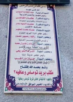 خطأ باسم "وزير الاتصالات والمحافظ" بلافتة افتتاح مكتب بريد بقرية بالأقصر