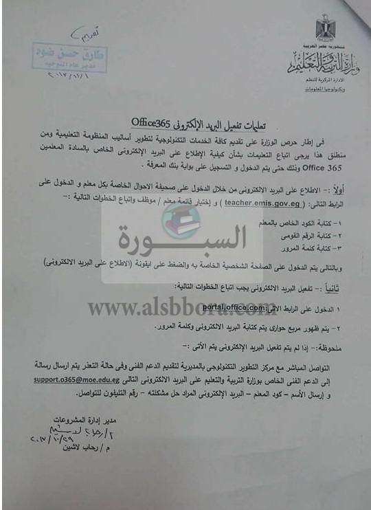 أرسلت وزارة التربية والتعليم فاكسا هاما الى المديريات والادارات التعليمية بشأن المعلمين، تشرح فيه كيفية تفعيل البريد الالكترونى "office365".