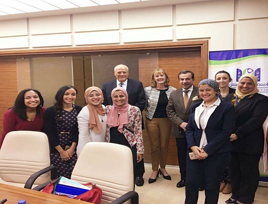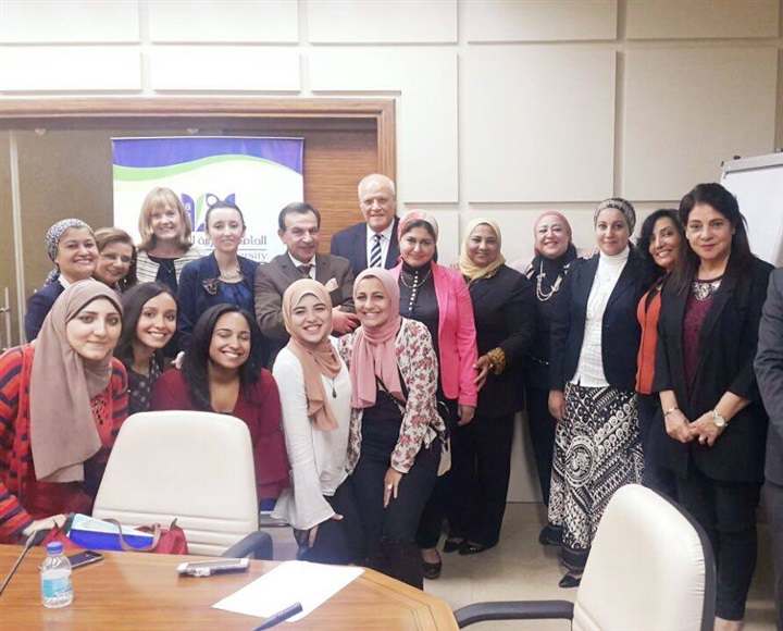 المفتوحة " aou" بمصر ضم سوزانا توماسي، وكاترين بلاند، وبحضور دكتور مروان العقيدي نائب رئيس الجامعة للشؤون