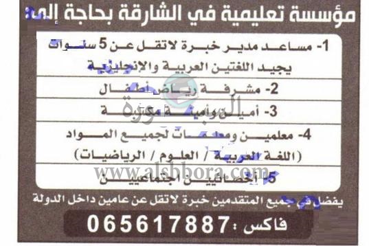 تعلن مدرسة خاصة في الشارقة عن وظائف جديدة للمعلمين والمعلمات في جميع المواد وذلك وفقا لنص الإعلان التالي:-