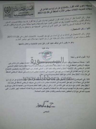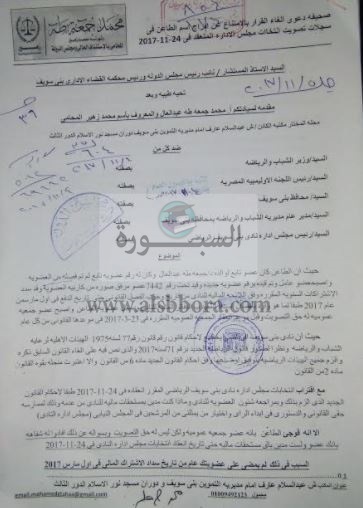 ولفت محمد زهير المحامي إلي أنه مع اقتراب انتخابات مجلس إدارة النادي الرياضي ببني سويف المقرر انعقادها 24 نوفمبر 2017 طبقا لأحكام القانون الجديد الذي يلزم ذلك، وبمراجعة شئون العضوية بالنادي وما إذا كنت مدين بمستحقات مالية للنادي من عدمه، وذلك لممارسة حقي القانوني والدستوري في ابداء الرأي لاختيار من يمثلني من المرشحين في مجلس إدارة النادي، إلا أنه فوجئ بأنه عضو جمعية عمومية وليس له حق التصويت دون إبداء أسباب قانونية.