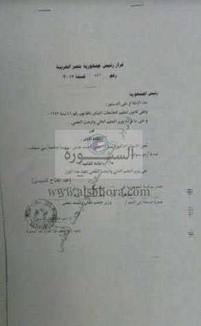السيسى يصدر قرارا جمهوريا بتعين رئيسا جديدا لجامعة بنى سويف