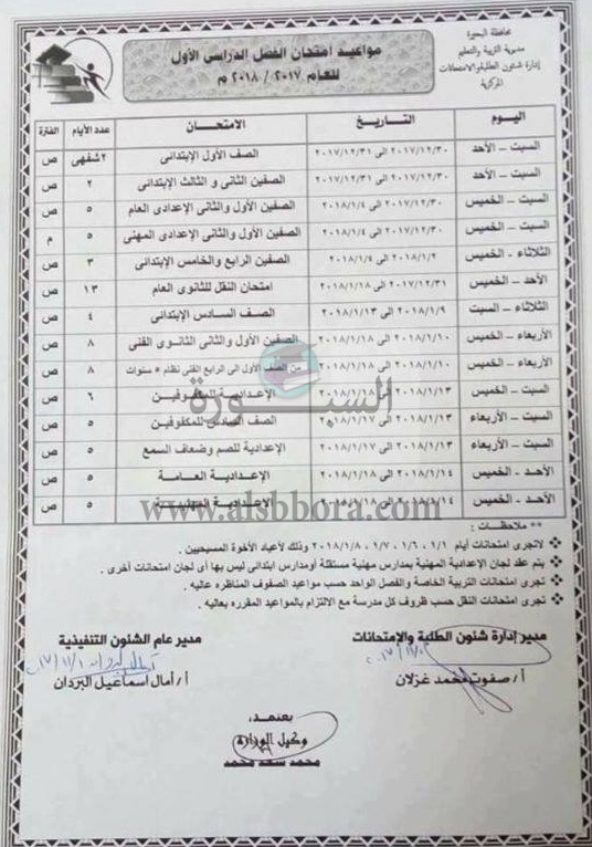 ننشر جدول امتحانات الفصل الدراسي الأول للعام 2017/ 2018 لجميع الصفوف
