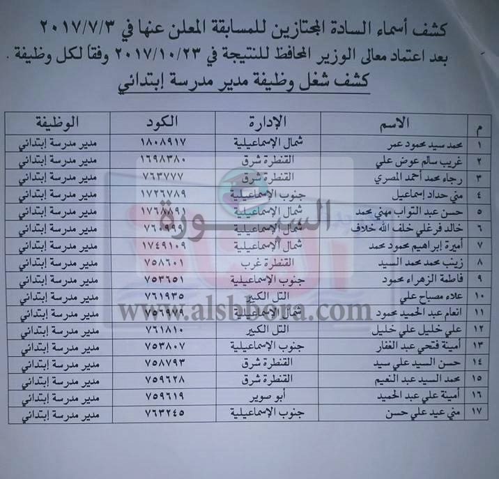 اعتمد الدكتور طارق شوقى، وزير التربية والتعليم والتعليم الفنى، نتيجة مسابقة مديرو المدارس الابتدائية بمديرية التربية والتعليم بالاسماعيلية.