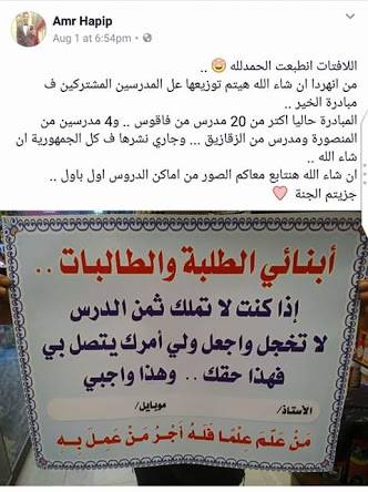 ويقوم المدرس الذى يريد ان ينضم الى هذه المبادرة بالتوقيع على استمارة "ابنائى الطلبة والطالبات اذا كنت لا تملك ثمن الدرس لا تخجل واجعل ولى أمرك يصل بى فهذت حقك.. وهذا واجبى