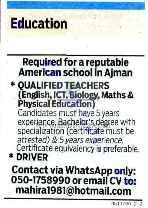 تعلن مدرسة خاصة في الإمارات عن وظائف جديدة للمعلمين والمعلمات وذلك وفقا لنص الإعلان التالي:-