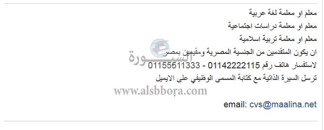 وظيفتك عندنا للتعاقد الفوري| سلطنة عمان تعلن عن وظائف جديدة للمعلمين والمعلمات.. ننشر نص الإعلان الأربعاء 08/نوفمبر/2017 - 09:04 م facebook twitter whats x facebook twitter rss feed أعلنت مدرسة خاصة في سلطنة عمان عن حاجتها للتعاقد مع معلمين ومعلمات وذلك وفقا لنص الإعلان التالي:- facebook twitter whats