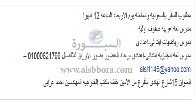 أعلنت مدرسة خاصة في السعودية عن حاجتها للتعاقد مع معلمين والمعلمات وذلك وفقا لنص الإعلان التالي:-