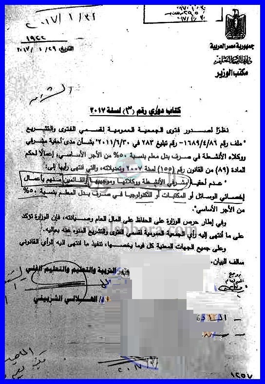بالمستندات| التعليم: حرمان هذة الفئة من المعلمين من صرف البدل