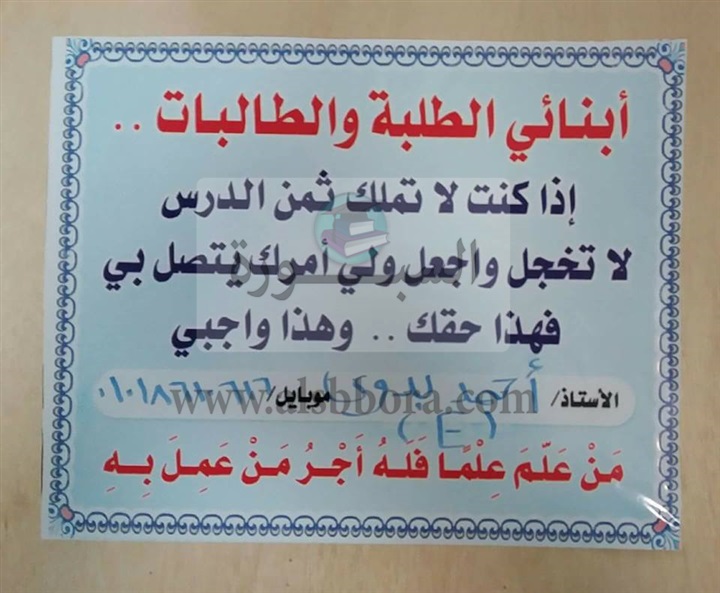 الدرس فلا تخجل واجعل ولي امرك يتصل بي فهذا واجبي وهذا حقك "