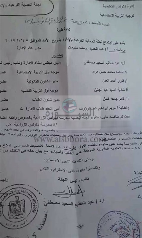 وحاول أهالى الطالب،التفاوض مع المدرسة والمعلم، لكنه رفض،وقد أصدرت اللجنة القرار اليوم بنقله، وحصل "السبورة" على قرار نقل الطالب.