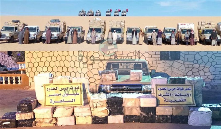 و كثفت قوات حرس الحدود داورياتها على كافة الإتجاهات الإستراتيجية لقطع خطوط التهريب وإحباط مخططات الخارجين عن القانون حيث تمكنت من إحباط محاولة تهريب كميات كبيرة من الأقراص المخدرة و البضائع غير خالصة الرسوم الجمركية ، بمنطقتى بحر الرمال الأعظم وعين دالة وجنوب منفذ السلوم حيث تم ضبط (14) سيارة دفع رباعى بدون لوحات معدنية محمل عليها (600) كرتونة تضم عدد (30) ألف قاروصة سجائر مسرطنة أنواع مختلفة وعدد (155) كرتونة تبغ وعدد (2) مليون قرص مخدر وتم القبض على (20) فرد مصرى الجنسية