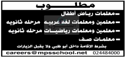 تعلن مدرسة خاصة في أبوظبي بدولة الإمارات عن وظائف جديدة للمعلمين والمعلمات وذلك وفقا لنص الإعلان التالي:-