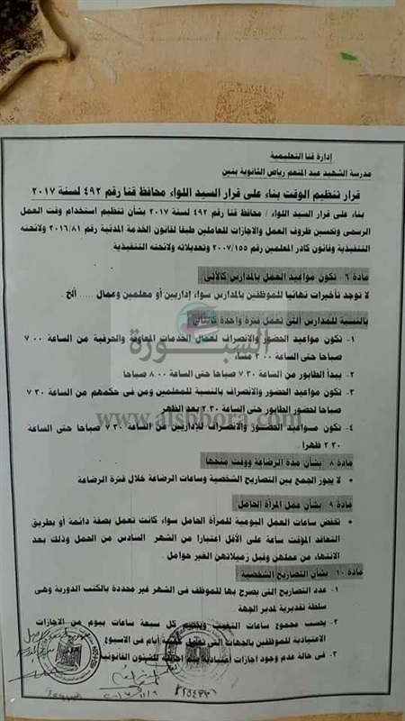 أصدرت إدارة قنا التعليمية العديد من القواعد المنظمة لأحوال المعلمين وهى كالتالي: