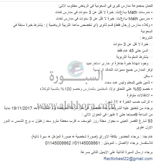 تعلن مدرسة خاصة في السعودية عن وظائف جديدة للمعلمين والمعلمات وذلك وفقا لنص الإعلان التالي:-