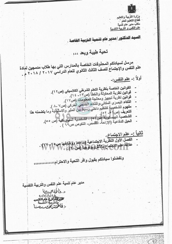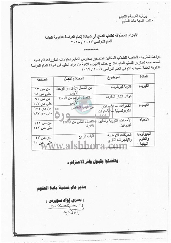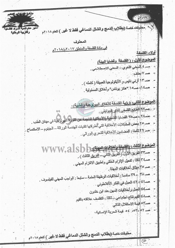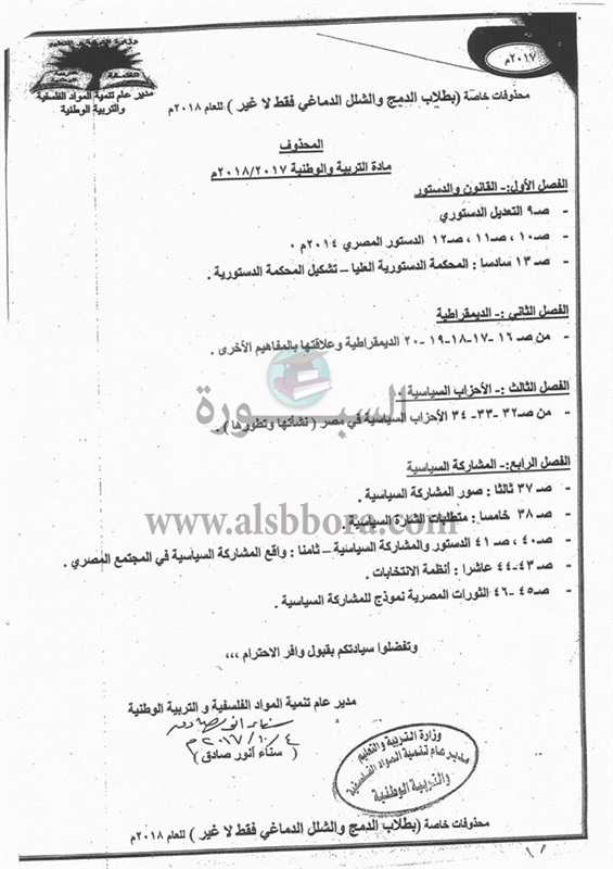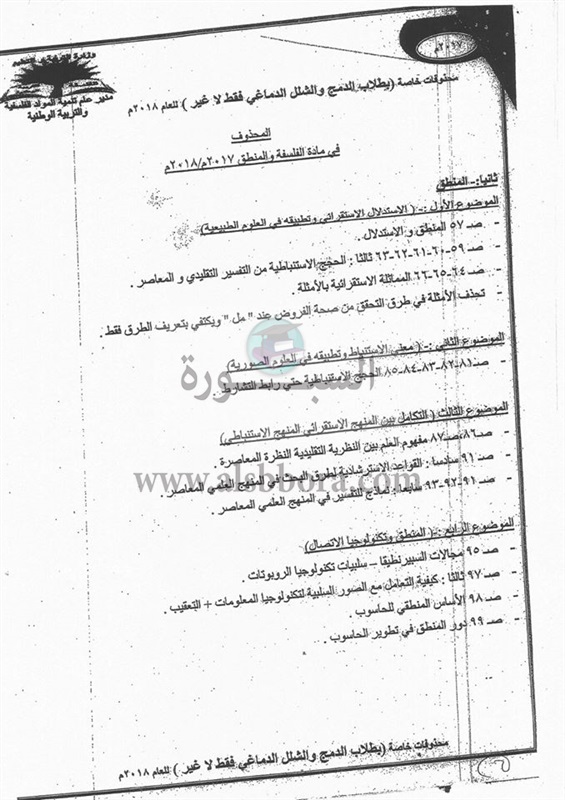 ينشر موقع السبورة جميع المحذوفات للمناهج الدراسية لطلاب الثانوية العامة من ذوى الدمج والاعاقة، والتى جاءت كالتالى: