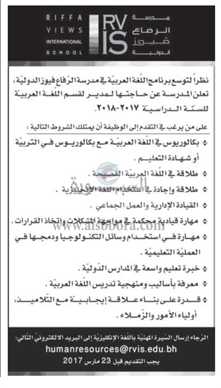 تعلن مدرسة خاصة في البحرين عن وظائف جديدة للمعلمين والمعلمات وذلك وفقا لنص الإعلان التالي:
