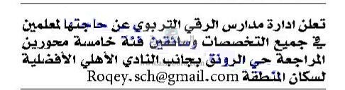 تعلن مدرسة خاصة في دولة الأردن عن وظائف جديدة للمعلمين والمعلمات في جميع المواد وذلك وفقا لنص الإعلان التالي: