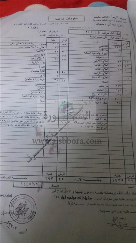 تعاقد 2008 بجميع الادارات التعليمية وخصم مايقرب من 50 جنيه من اسار راتب معلمين قرارات