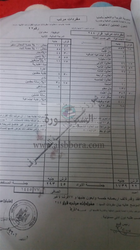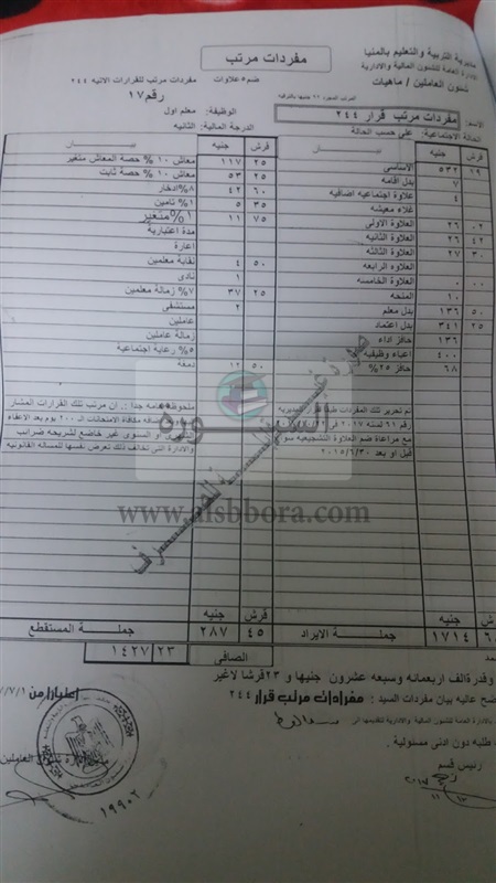 اصدرت مديرية الترببة والتعليم بمحافظة المنيا قرار 61 الخاص بتجريد علاوات المعلم المساعد للمعلمين تعاقد 2008 بجميع الادارات التعليمية وخصم مايقرب من 50 جنيه من اساسى راتب معلمين قرارات المنيا تعاقد 2008 بقرارات 53 و 74 و 244 ، وقد ارسلت المديريه تعليماتها لجميع الادارات بالخصم وفقا للمفردات المرفقة والموضحه مرتباتها كالتالى :