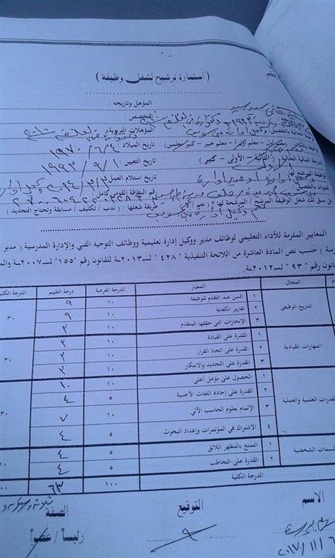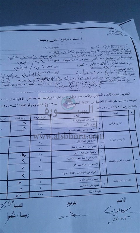 حيث قامت ايضا سهام يوسف القائم باعمال وكيل الوزارة ومعها درويش حيدر مدير التعليم العام باستخدام المزيل وتعديل بعض درجات المتقدمين