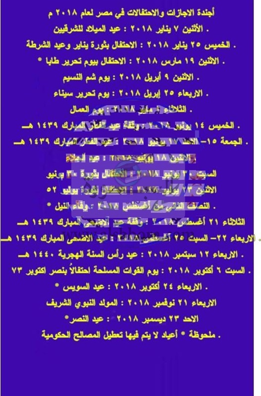 بالمستندات| ننشر خريطة اجازات عام 2018 للمعلمين ولجميع العاملين بالدولة