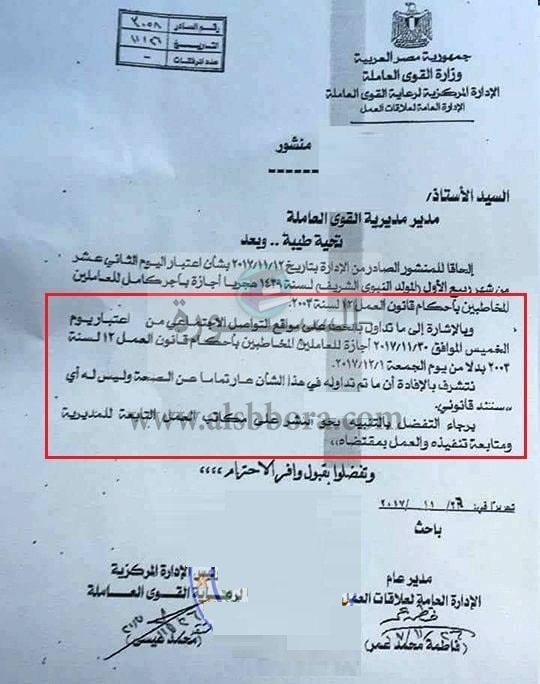 بالمستندات| هل ينطبق القرار الوزاري الخاص بإلغاء أجازة "المولد النبوي" يوم الخميس علي المعلمين والعاملين بالدولة؟