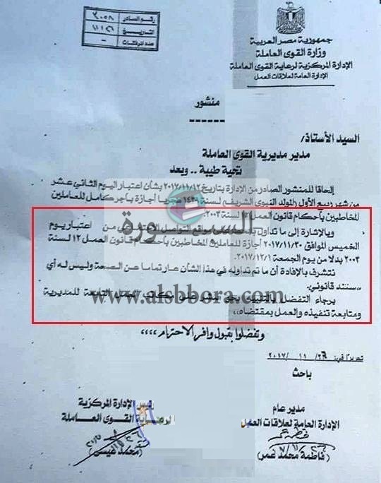 *بالمستندات| هل ينطبق القرار الوزاري الخاص بإلغاء أجازة "المولد النبوي" يوم الخميس علي المعلمين والعاملين بالدولة؟