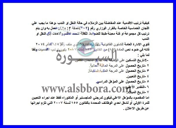 تنشر "السبورة" المواد القانونية الخاصة كيفية ترتيب الأقدمية للمعلمين في حالة الندب والنقل.