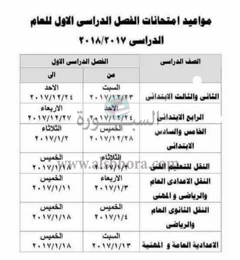 ننشر جدول ومواعيد امتحانات الفصل الدراسى الأول لعام 2018/2017