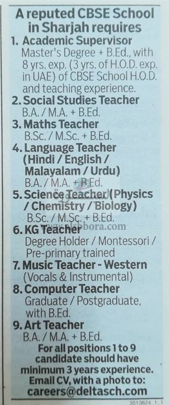 اعلنت مدارس سابس بالشارقه بدولة الامارات عن حاجتها الى معلمين ومعلمات للعام الدراسى 2018 وفقا للاعلان الرسمى الصادر من المدارس لجميع التخصصات وفقا للاعلان المرفق :