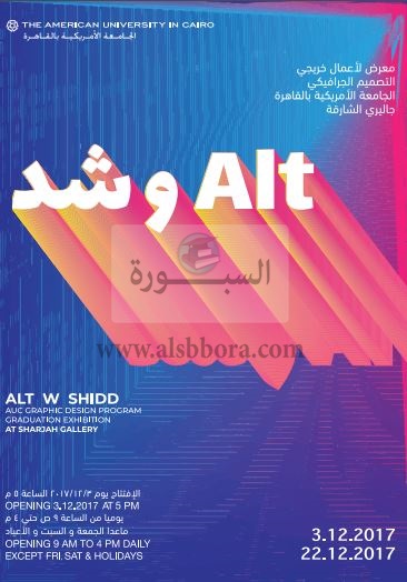 يقيم قسم التصميم الجرافيكي بالجامعة الأمريكية بالقاهرة معرضاً لعرض مشاريع تخرج طلاب القسم تحت عنوان "ALT وشد،" حيث تسلط مشاريع الطلاب الضوء على حلول للمشكلات الاجتماعية والتعليمية محاولة إحياء الثقافة المصرية بأشكالها القديمة والحديثة. يحضر حفل افتتاح المعرض الخريجين وآبائهم وأصحاب الأعمال في مجال التصميم والاعلان وذلك للاحتفال والبحث عن المواهب ضمن الطلاب.