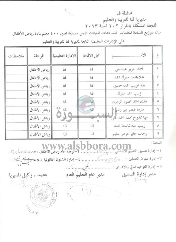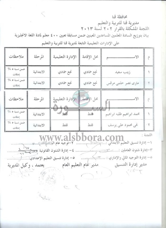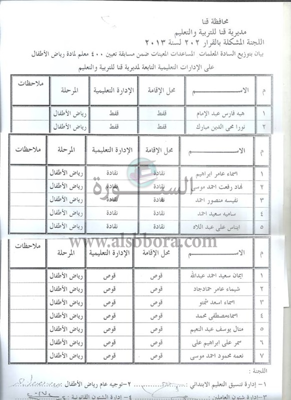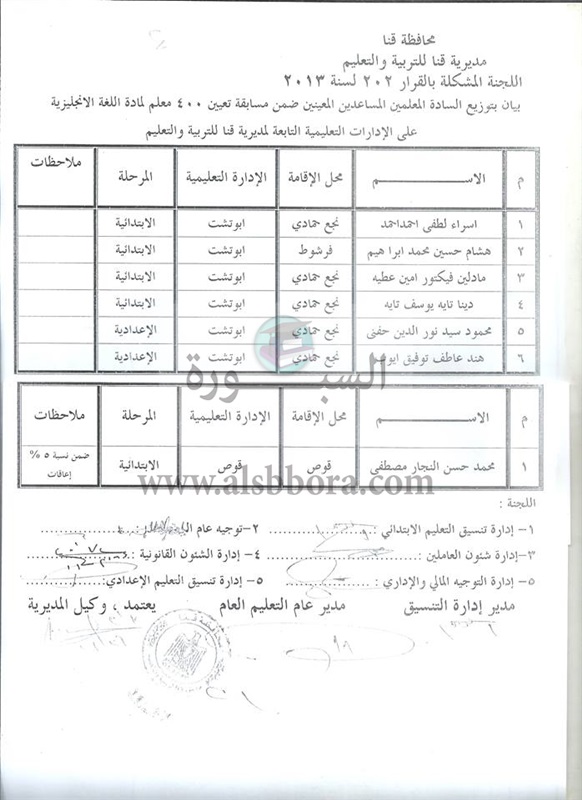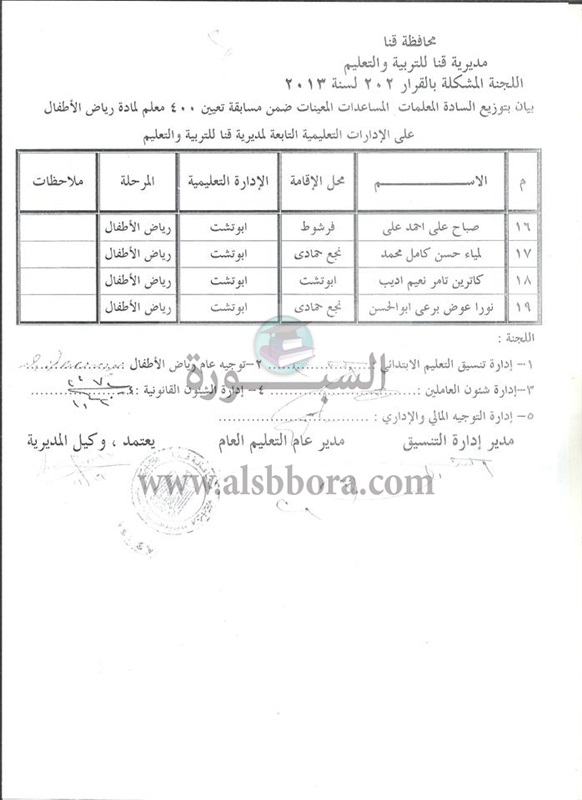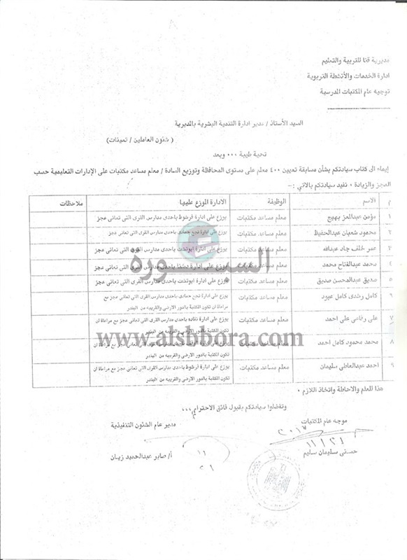 بالاسماء.. توزيع المعلمين لمسابقة الـ400 معلم على الادارات المختلفة