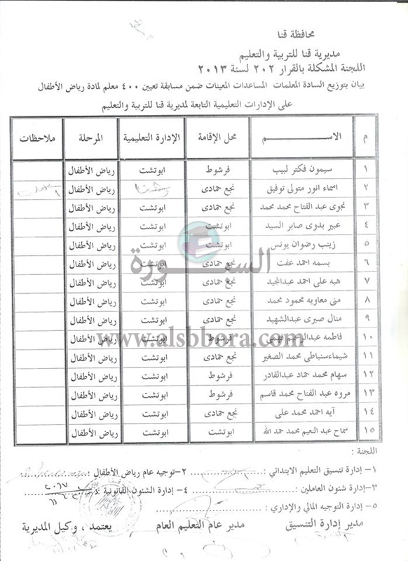 ننشر كشوف اسماء مسابقة الـ400 معلم مساعد و اخصائي مساعد و توزيعهم علي الادارات التعليمية"التطوير التكنولوجي " "اللغة الانجليزية "" الاقتصاد المنزلي " " رياض الاطفالي "
