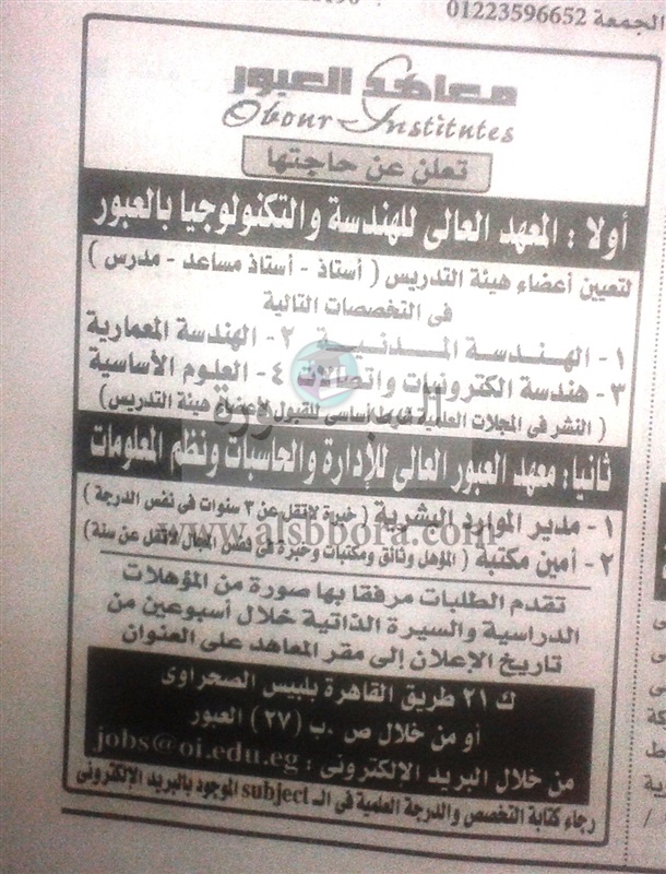 عاجل.. معاهد العبور تعلن عن حاجتها الى أعضاء هيئة التدريس فى 6 تخصصات.. ننشر نص الاعلان