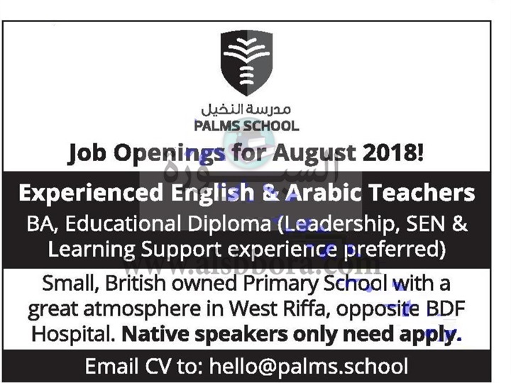 تعلن مدارس النخيل البحرينية عن وظائف جديدة للمعلمين والمعلمات وذلك وفقا لنص الإعلان التالي: