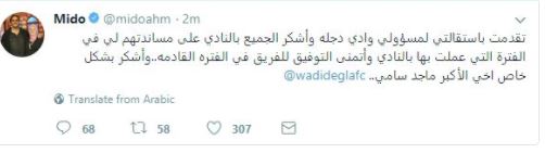 "ميدو" يقدم استقالته من تدريب وادى دجلة