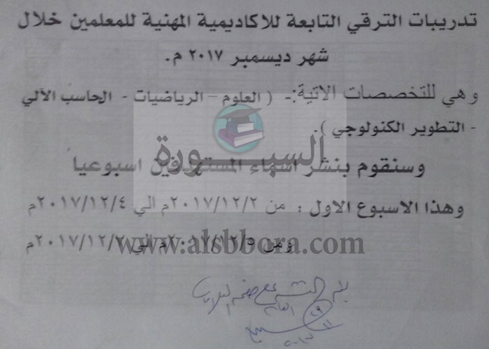 أعلنت الاكاديمية المهنية للمعلمين عن اسماء المعلمين المرشحين للترقى بداية من 5 ديسمبر 2017، وجاءت كشوف كالتالى: