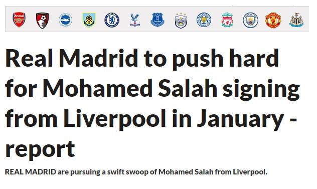 اعلنت صحيفة اسبانية ان المصرى محمد صلاح لاعب منتخب الفراعنة وليفربول الانجليزى على رادار الفريق الملكى ريال مدريد، حيث يسعى للحصول على خدمات اللاعب فى موسم الانتقالات الشتوية.