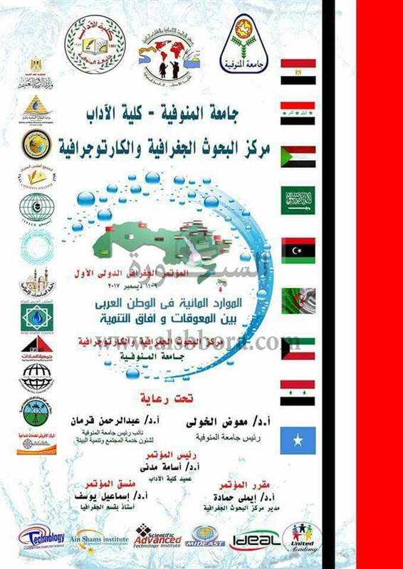 أعلن قسم الجغرافيا في كلية الآداب جامعة المنوفية عن إنطلاق المؤتمر الدولي الأول للموارد المائية في الوطن العربي بين المعوقات وآفاق التنمية الذي يبدأ فعالياته السبت المقبل من 9 إلى 11 ديسمبر الجاري