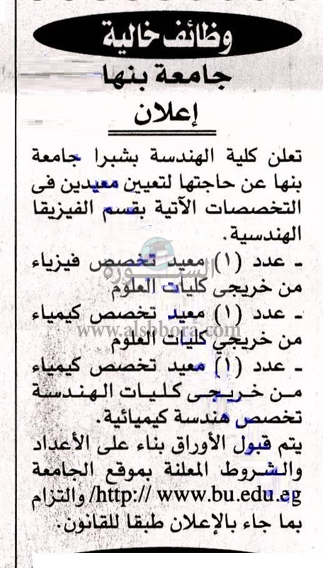 تعلن جامعة بنها عن وظائف جديدة لأعضاء هيئة التدريس "من حملة الماجستير والدكتوراه".. ننشر نص الإعلان