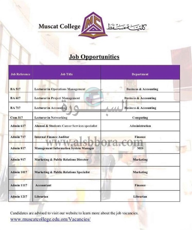 تعلن جامعة مسقط العمانية عن وظائف جديدة شاغرة وذلك وفقا لنص الإعلان التالي:-