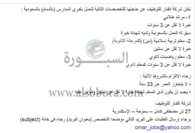 تعلن مدرسة خاصة في السعودية عن وظائف جديدة للمعلمين وذلك وفقا لنص الإعلان التالي:-