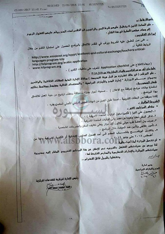 على من يرغب التقدم لمنحة الولايات المتحدة الامريكية من السادة المعلمين الراغبين فى التقدم الدخول على المواقع الالكترونية بالاوراق المرفقة او التواصل من خلال الايميلات للمسئولين والارقام المدرجة بالاوراق للاعلان الرسمى .