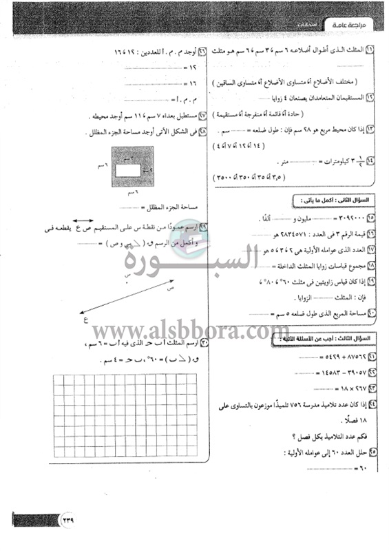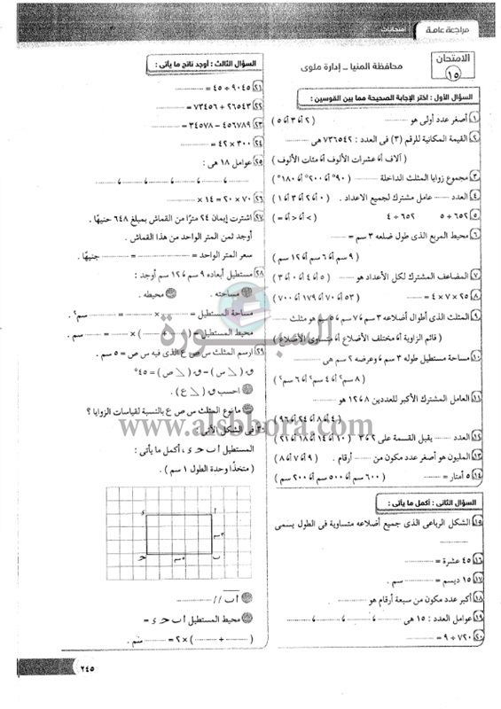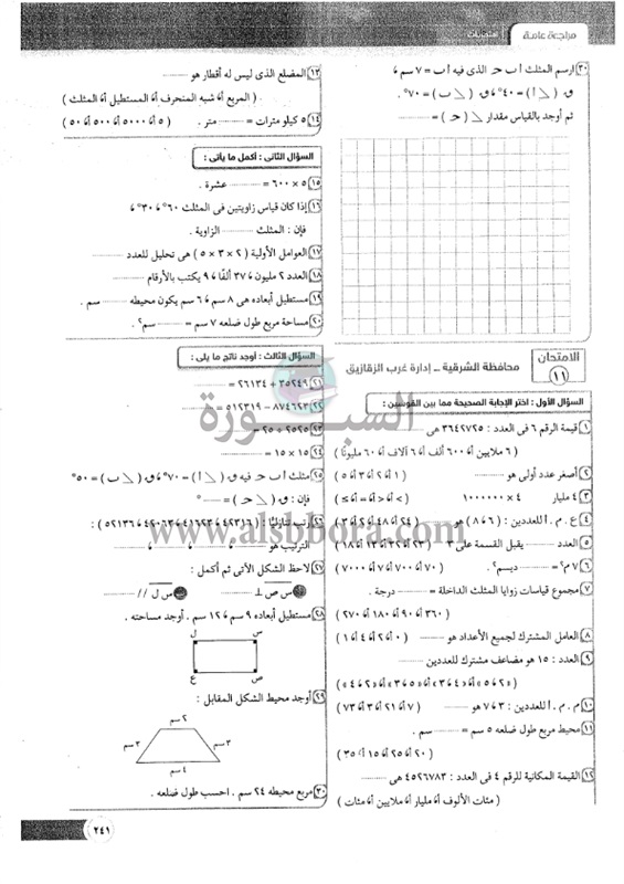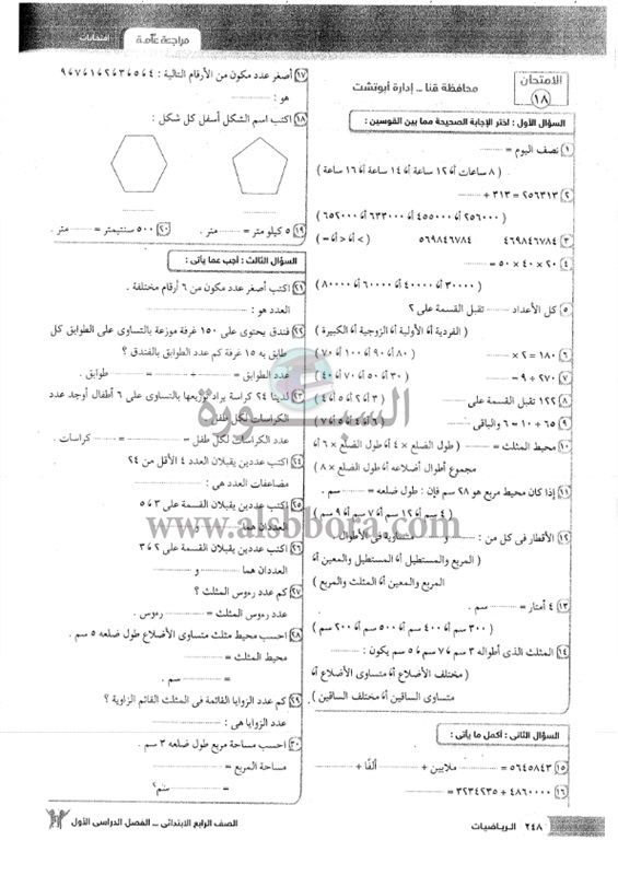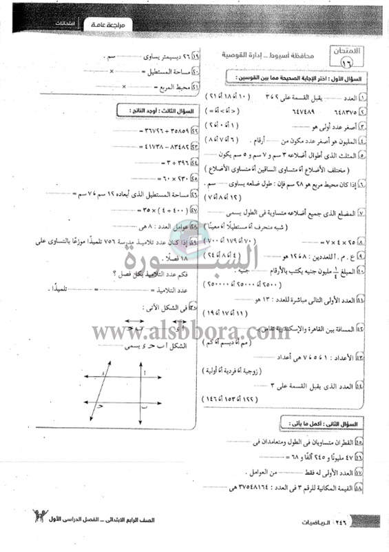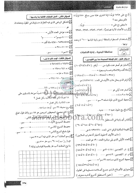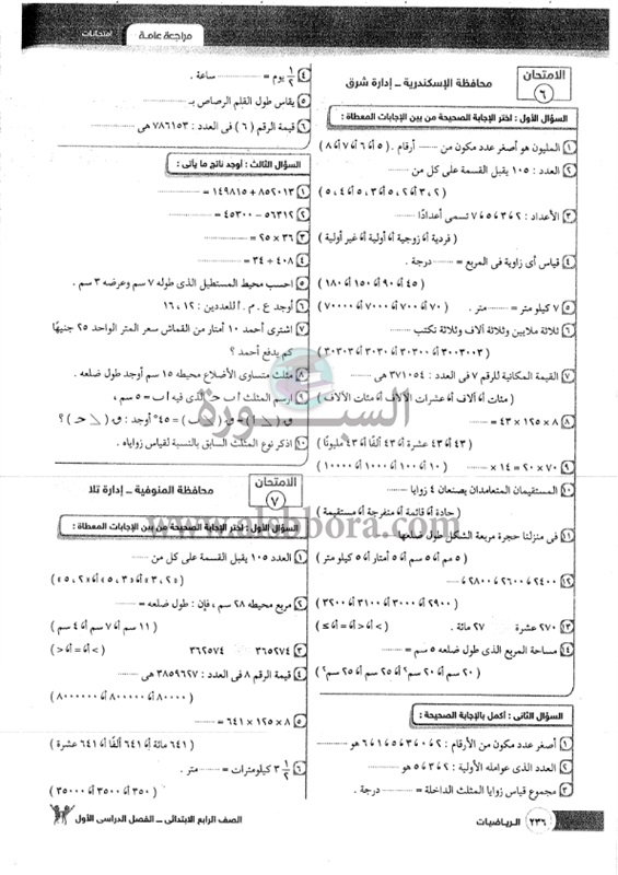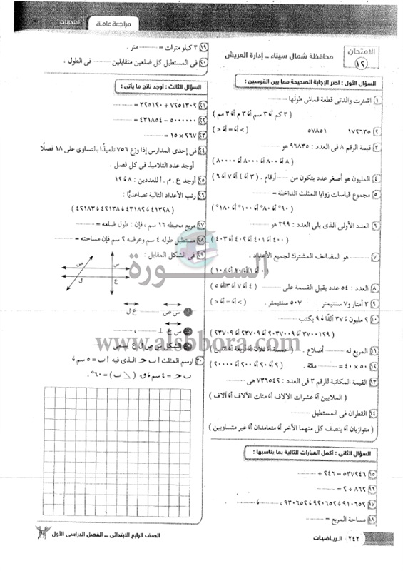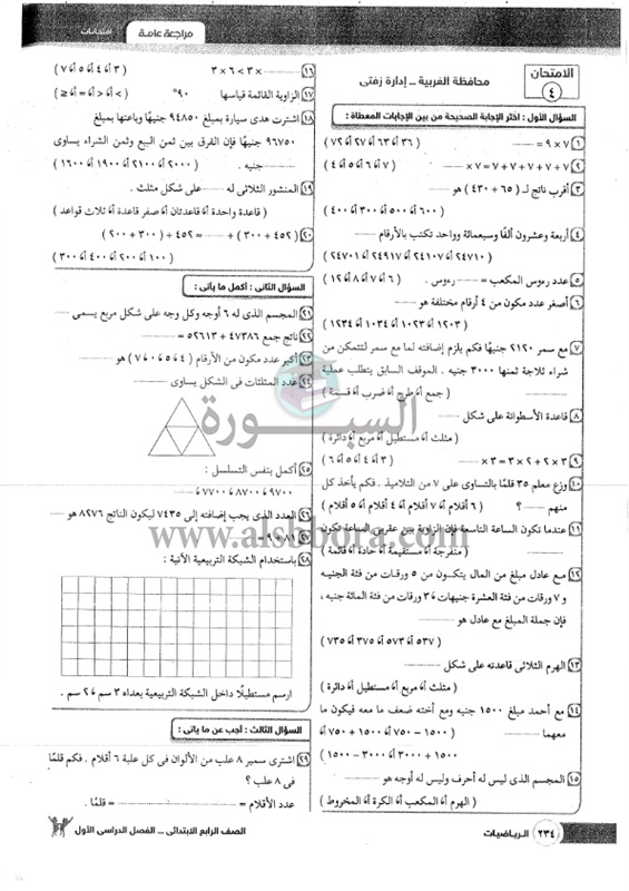 تنشر "السبورة"، نماذج امتحانات الرياضيات للصف الرابع الابتدائى المتوقعة لامتحان نصف العام.
