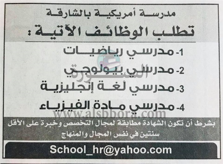 عاجل| مدارس الشارقة الإماراتية تعلن عن وظائف جديدة للمعلمين والمعلمات.. ننشر نص الإعلان