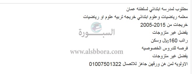 تعلن مدرسة خاصة في سلطنة عمان عن وظائف جديدة للمعلمين والمعلمات وذلك وفقا لنص الإعلان التالي:-