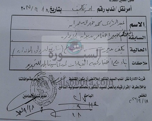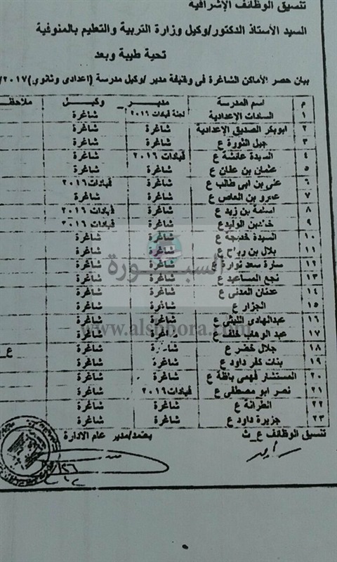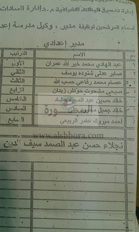 وأكد انه ترشح لهذه الوظيفة وهى كانت شاغرة باعلان رسمى وقتئذ وقد وفق بحمد الله واجتياز الاختبارات المخصصة لهذه الوظيفة وبالفعل انتهت بتكليفه بوظيفة مدير مدرسة على ان يكون التنفيذ فوريا وقام بالتوقيع على استلام المدرسة سابقة الذكر الا انه فوجئ بعد يومين من تكليفه بالعمل كمدير مدرسة!.